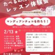 2/13(金)たべるのcooking体験会「マンディアンチョコ作り」開催されます