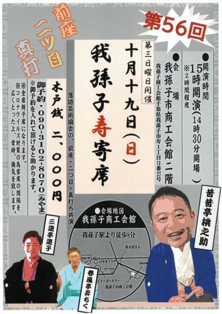 10/19(日)我孫子市商工会館にて 「第56回 我孫子寿寄席」開催されます。