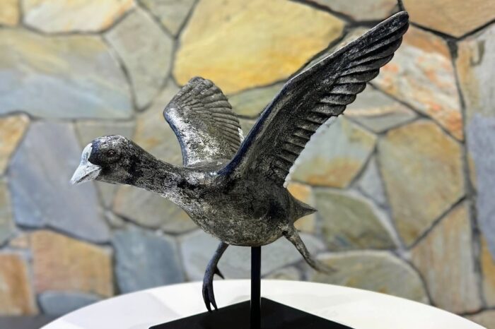 30年、街を見守り続けた我孫子の鳥「オオバン」をモチーフにした外灯オブジェ。