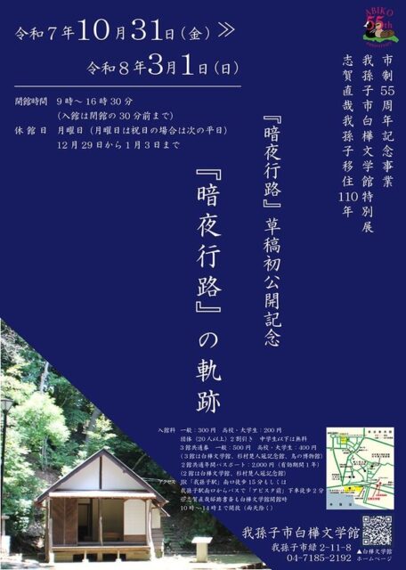 10/31から我孫子市白樺文学館にて、 白樺文学館特別展「『暗夜行路』の軌跡 開催