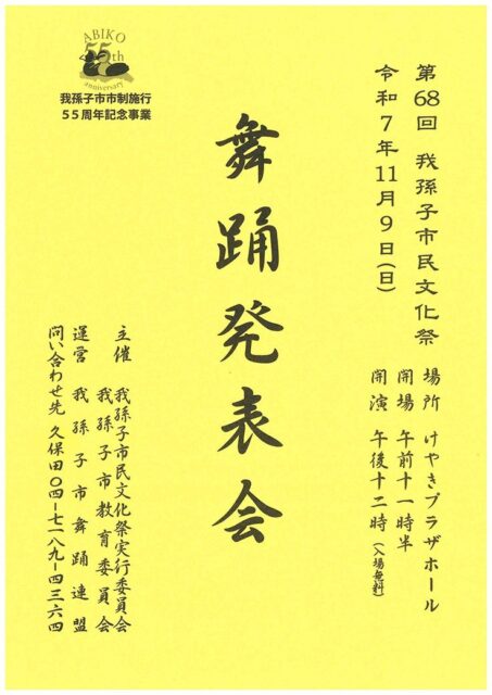 11/9 第68回 市民文化祭 【舞踊発表会】がけやきプラザで開催されます。