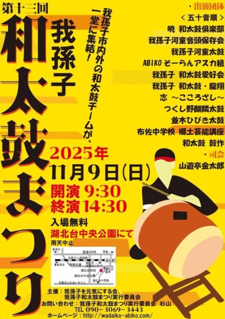 11/9 湖北台中央公園にて「第13回 我孫子和太鼓まつり」が開催されます