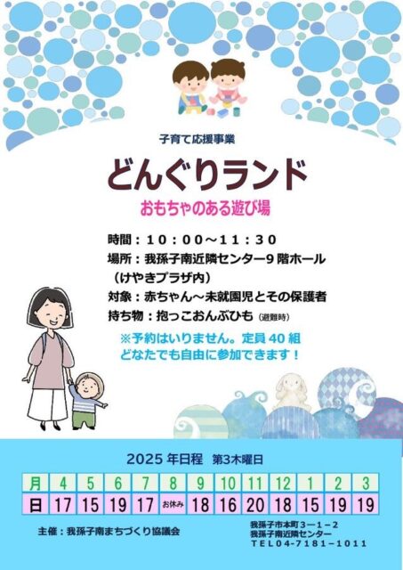 11/20 我孫子市南近隣センターにて「子育て応援事業どんぐりランド」が開催されます。