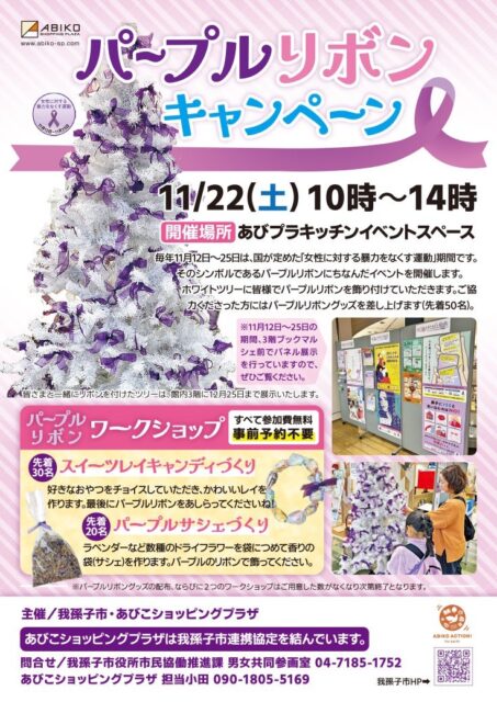 11/22土曜 あびこショッピングプラザで「我孫子市パープルリボンキャンペーン」が開催されます。