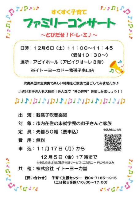 12/6(土曜) 【すくすく子育て ファミリーコンサート ~とびだせ!ド・レ・ミ♪~】が開催されます