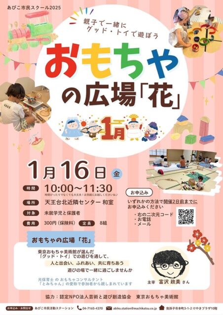 1/16(金)天王台北近隣センターにて、おもちゃの広場「花」が開催されます。