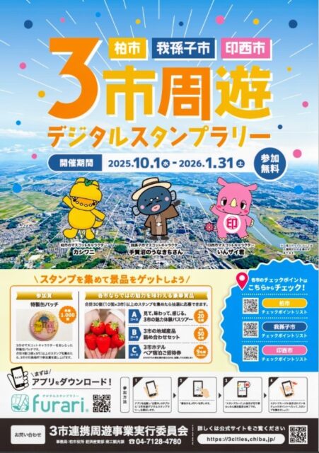 1/31まで。3市周遊デジタルスタンプラリー開催中。