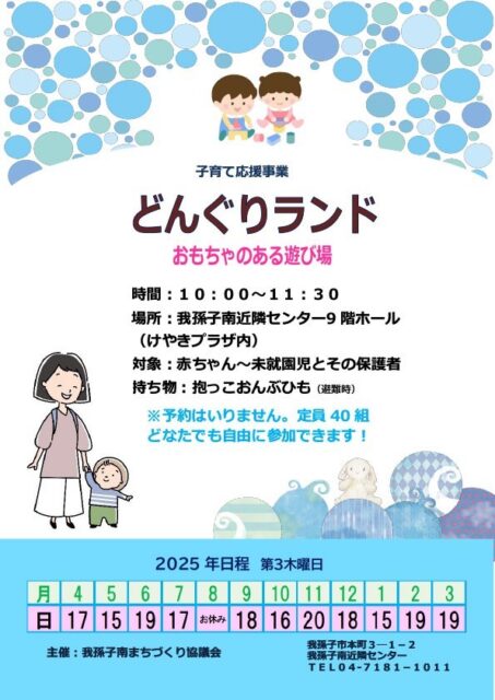1/15(木)我孫子南近隣センターにて 「おもちゃのある遊び場 どんぐりランド」が開催されます。