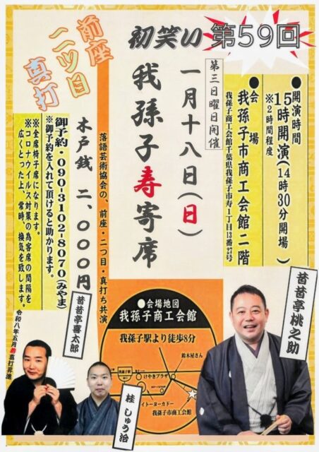 1/18(日)我孫子市商工会館にて「初笑い 我孫子寿寄席」開催