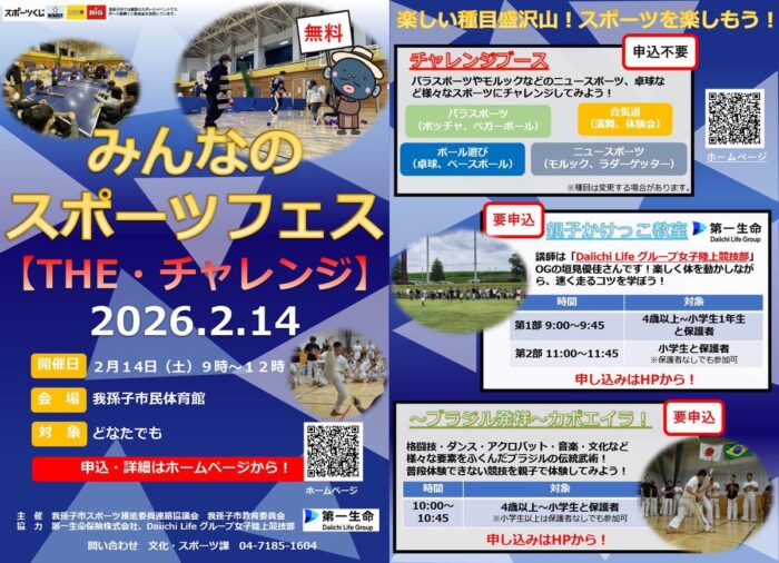 2月14日みんなのスポーツフェス【THEチャレンジ】が開催されます。