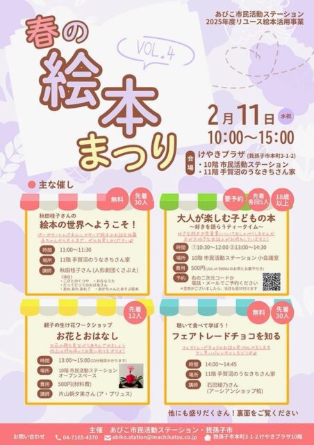 2/11(水・祝)「春の絵本まつり」が、けやきプラザで開催されます。