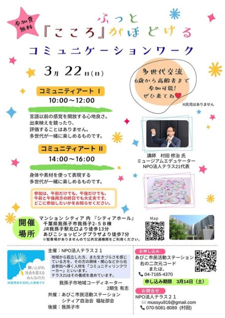 3/22(日)シティアホールにて、「ふっと『こころ』がほどけるコミュニケーションワーク」開催