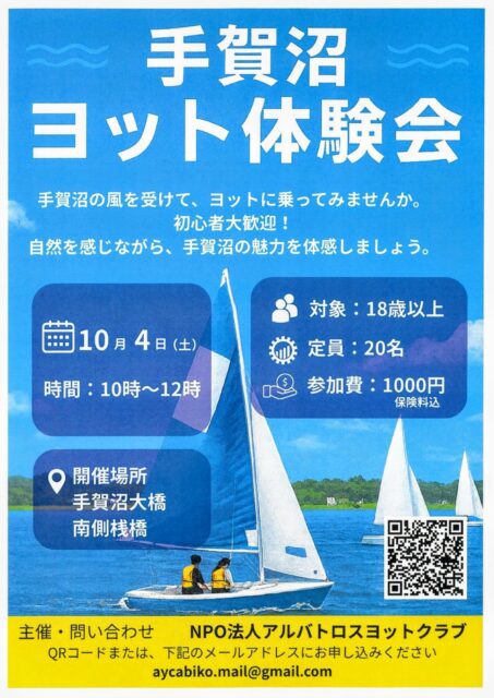 アルバトロスヨットクラブによる初心者向けヨット体験会が開催されます。